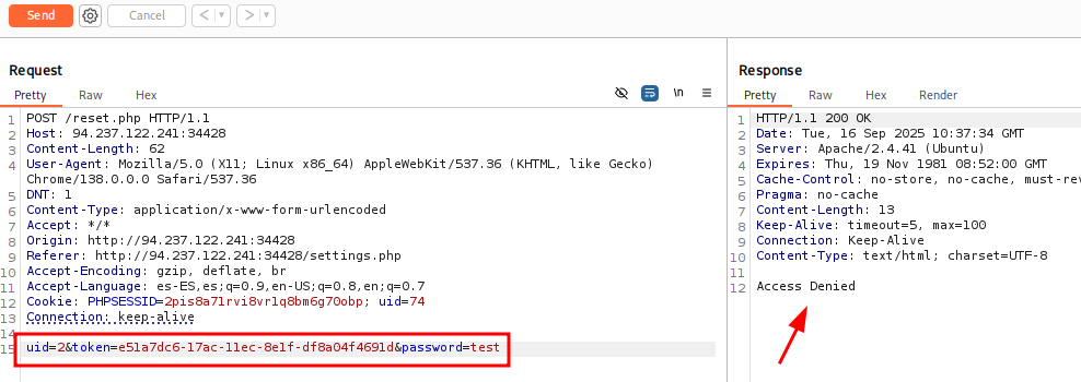 Y nos da acceso denegado. Sin embargo si cambiamos la petición a GET: