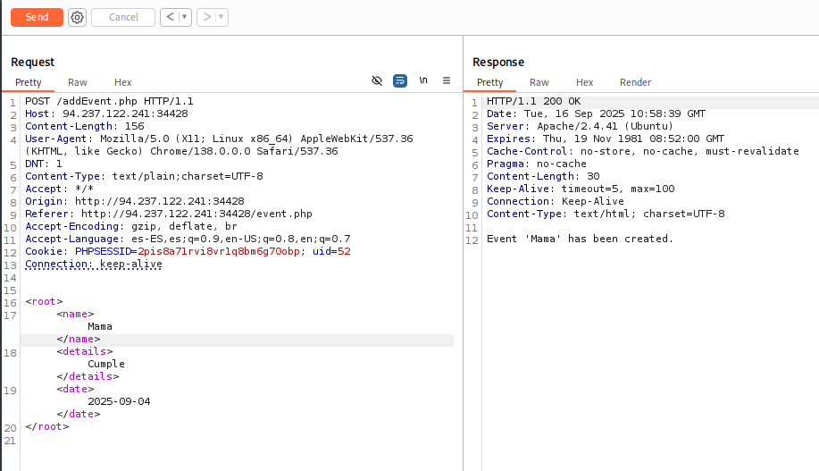 Revisamos la funcionalidad nueva y vemos que maneja los eventos con XML: