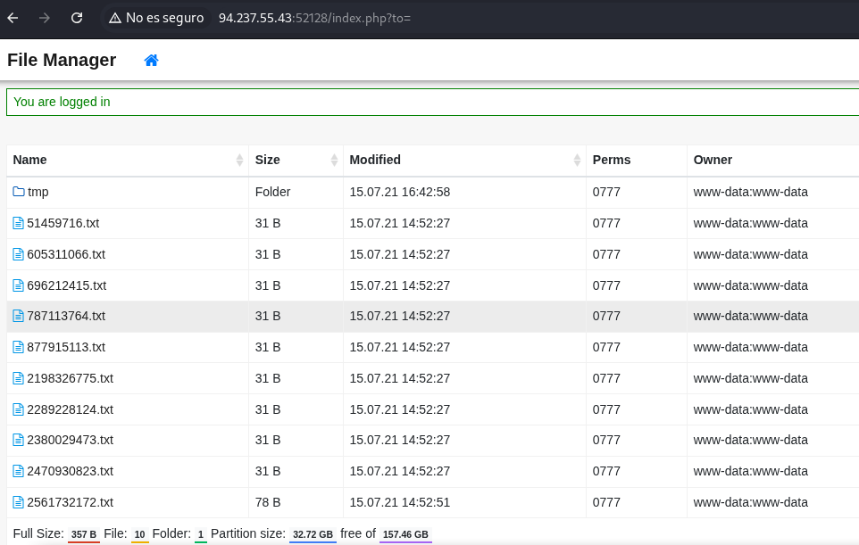 Entramos con las credenciales que nos dan y vemos lo siguiente un administrador de archivos.