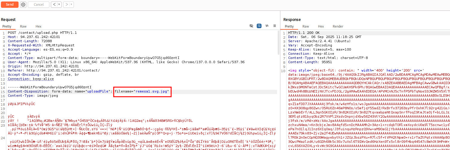 4. Que sucede como vemos que podemos leer archivos necesitamos saber donde se suben nuestras imágenes, para poder consumir esos recursos cuando se suban al servidor. Vemos que le estamos haciendo POST a /contact/upload.php. Vamos a revisar el contenido de upload.php