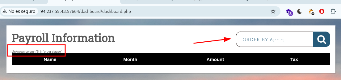 Vemos que falla con 6 por lo que tiene 5 columnas.